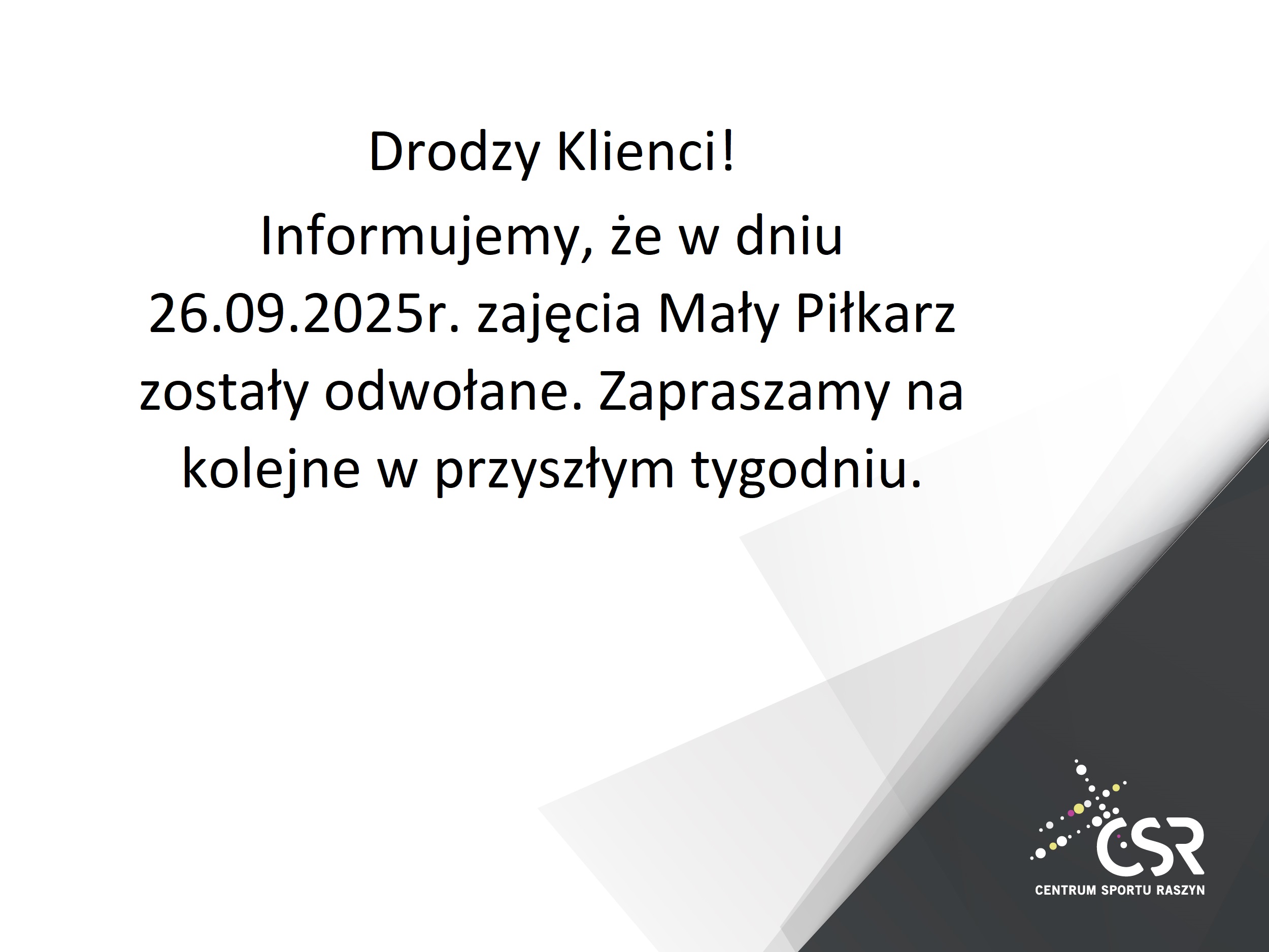 Odwołane zajęcia Mały Piłkarz | Centrum Sportu Raszyn