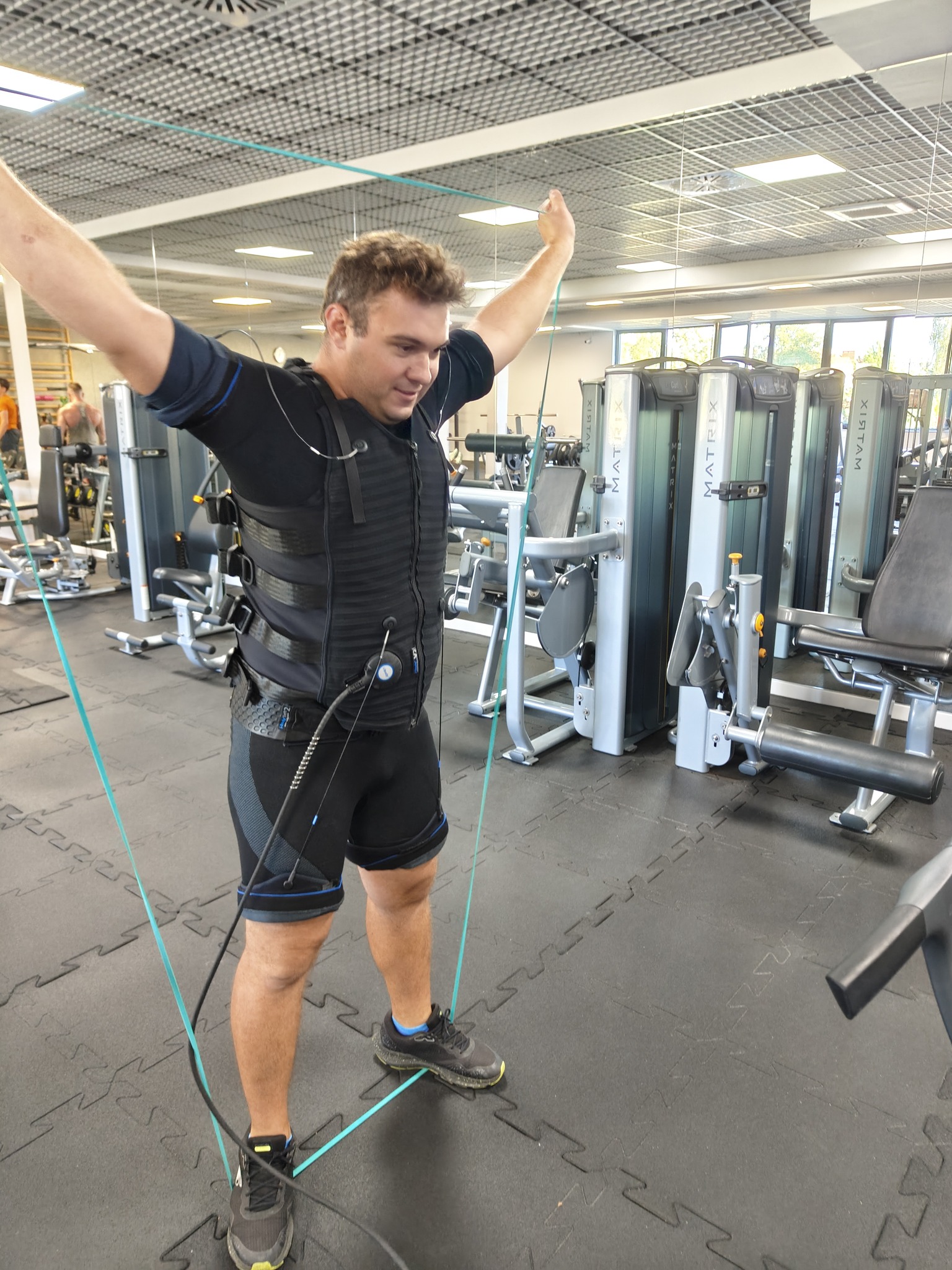 Zapraszamy na treningi EMS – nowoczesną metodę, która aktywuje nawet 90% mięśni jednocześnie. To idealne rozwiązanie dla osób, które cenią efektywność i mają mało czasu 🕐