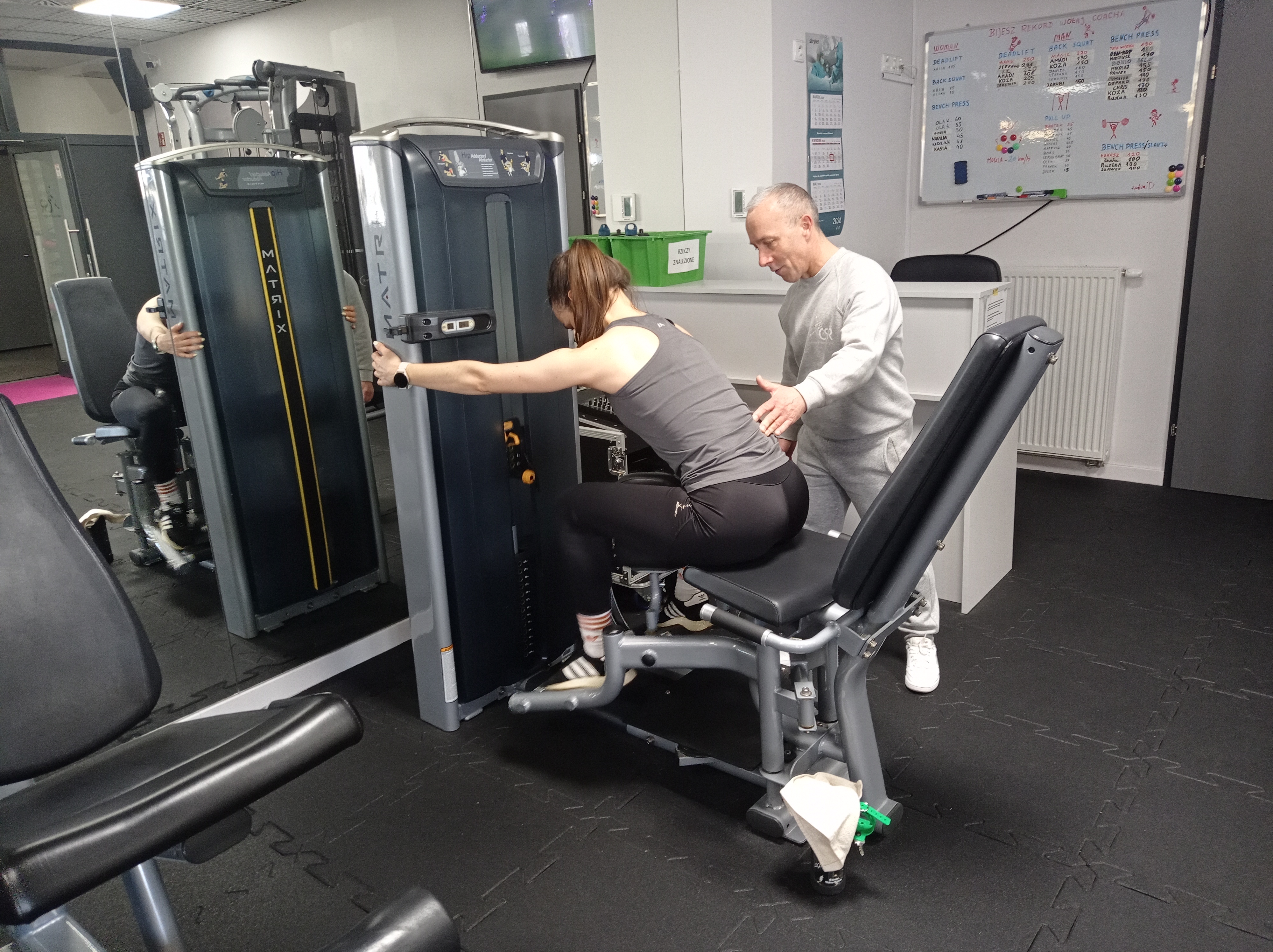 Na sali zawsze można liczyć na pomocnych trenerów. Są obecni, podpowiadają, pokazują ćwiczenia i chętnie odpowiadają na pytania. Bez presji, bez oceniania — jeśli czegoś nie wiesz, po prostu pytasz.