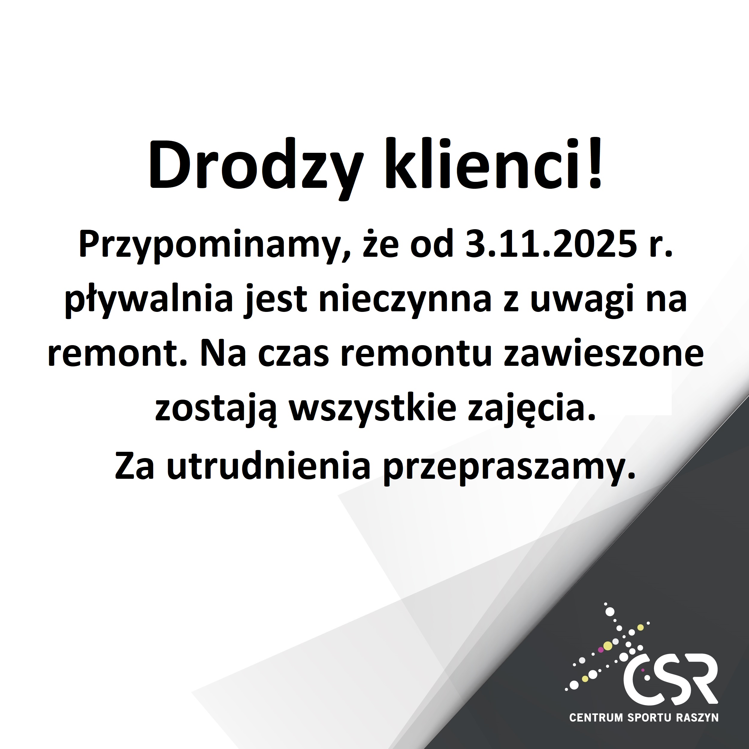 Drodzy klienci! | Centrum Sportu Raszyn