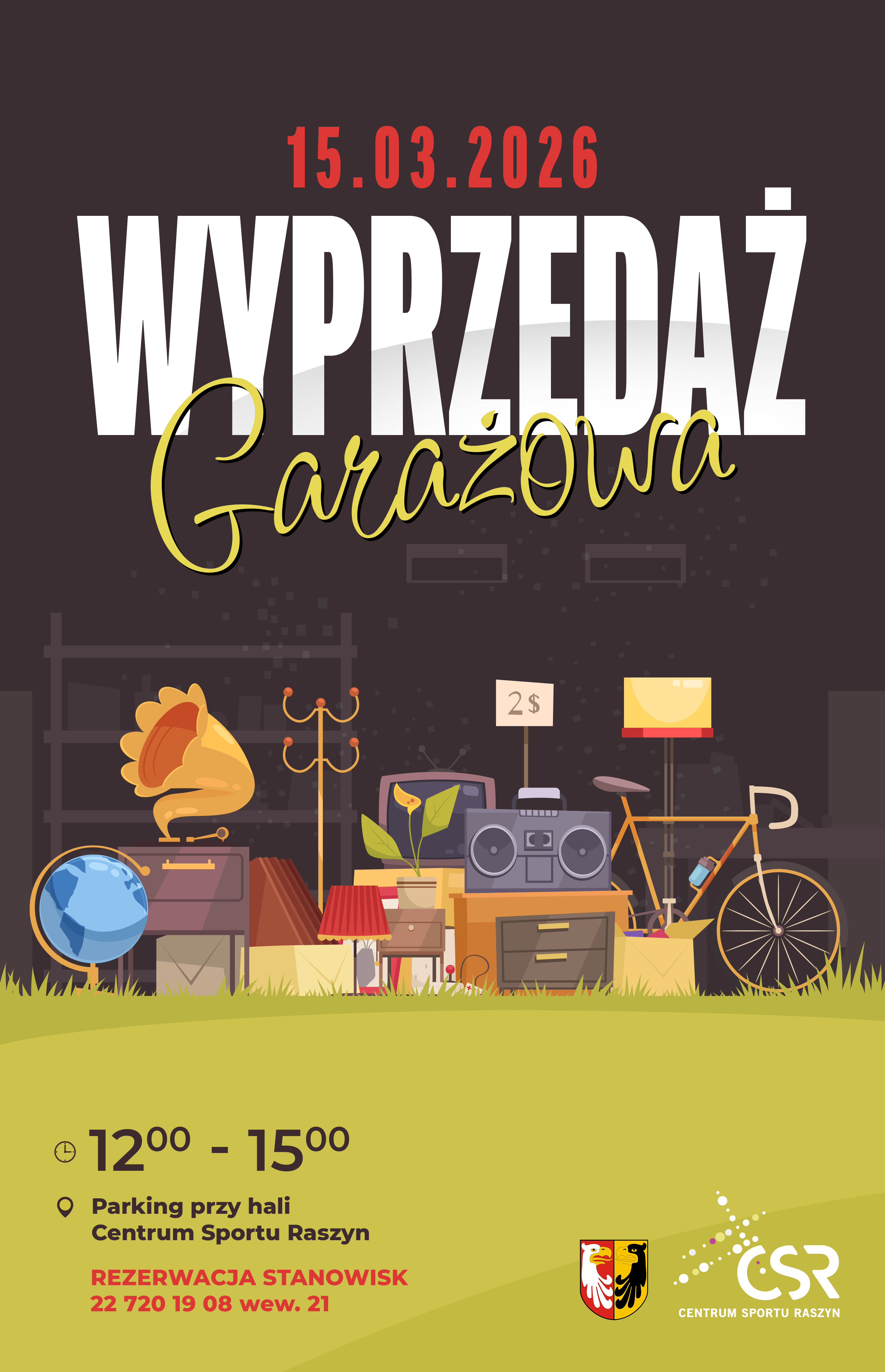 📣 Przypominamy o zbliżającej się Wyprzedaży Garażowej w Centrum Sportu Raszyn, która odbędzie się 15 marca 2026 r. na parkingu przed halą sportową CSR. To świetna okazja, aby sprzedać rzeczy, których już nie używasz, upolować ciekawe przedmioty w dobrej cenie i spędzić czas w sąsiedzkiej atmosferze. Masz w domu ubrania, zabawki, książki albo sprzęty, które mogą jeszcze komuś posłużyć? Daj im drugie życie i zrób miejsce na nowe! 🧸📚👗