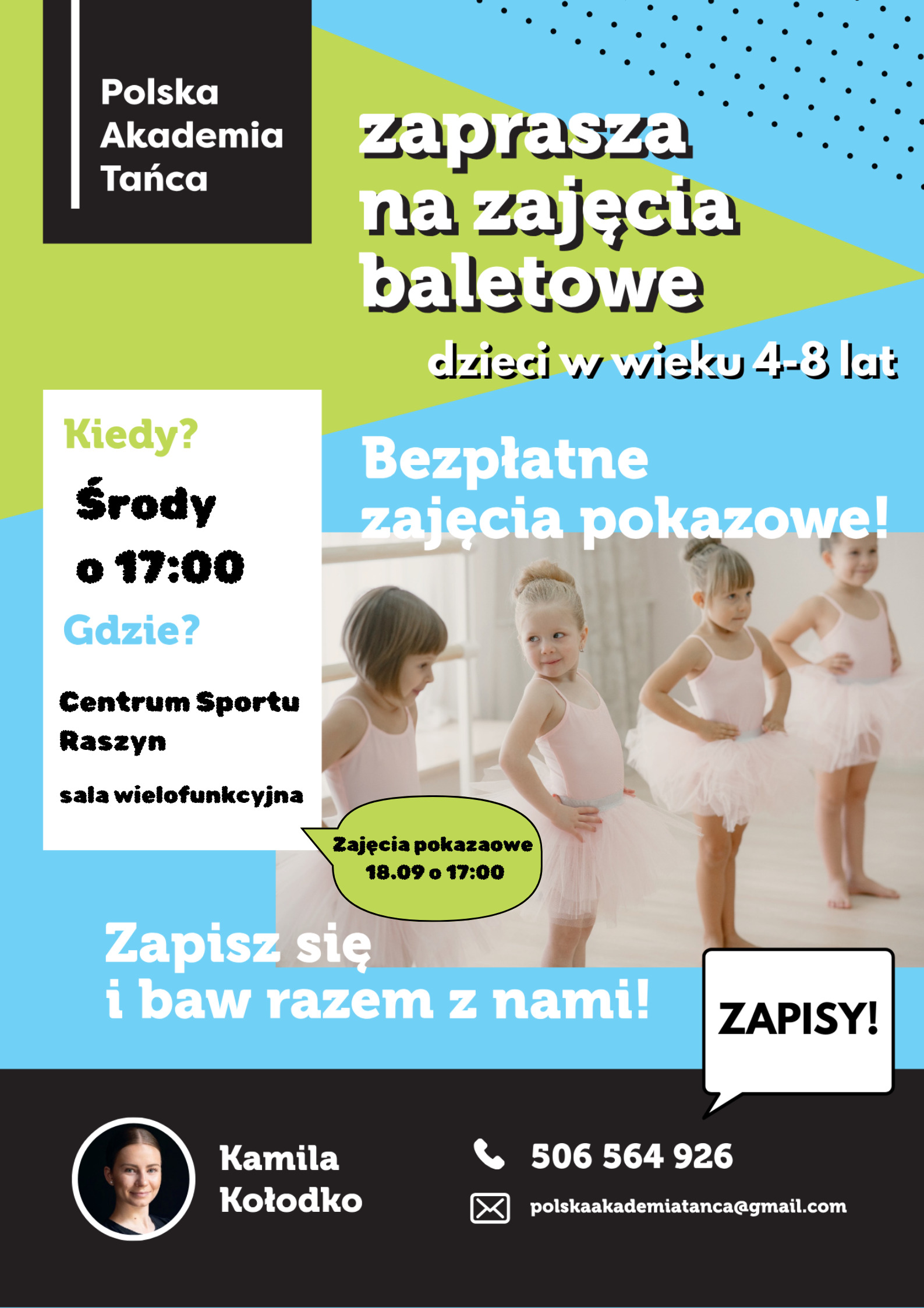 Centrum Sportu Raszyn oraz Polska Akademia Tańca zapraszają na zajęcia baletowe dla dzieci w wieku 4-8 lat.![]()