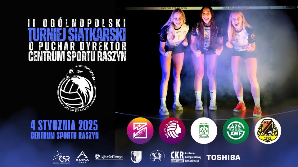II Ogólnopolski Turniej Siatkarski o Puchar Dyrektor Centrum Sportu Raszyn II Ogólnopolski Turniej Siatkarski o Puchar Dyrektor Centrum Sportu Raszyn 4 stycznia 2025 r. Godzina 9:00 Centrum Sportu Raszyn, ul. Sportowa 30 Serdecznie zapraszamy!