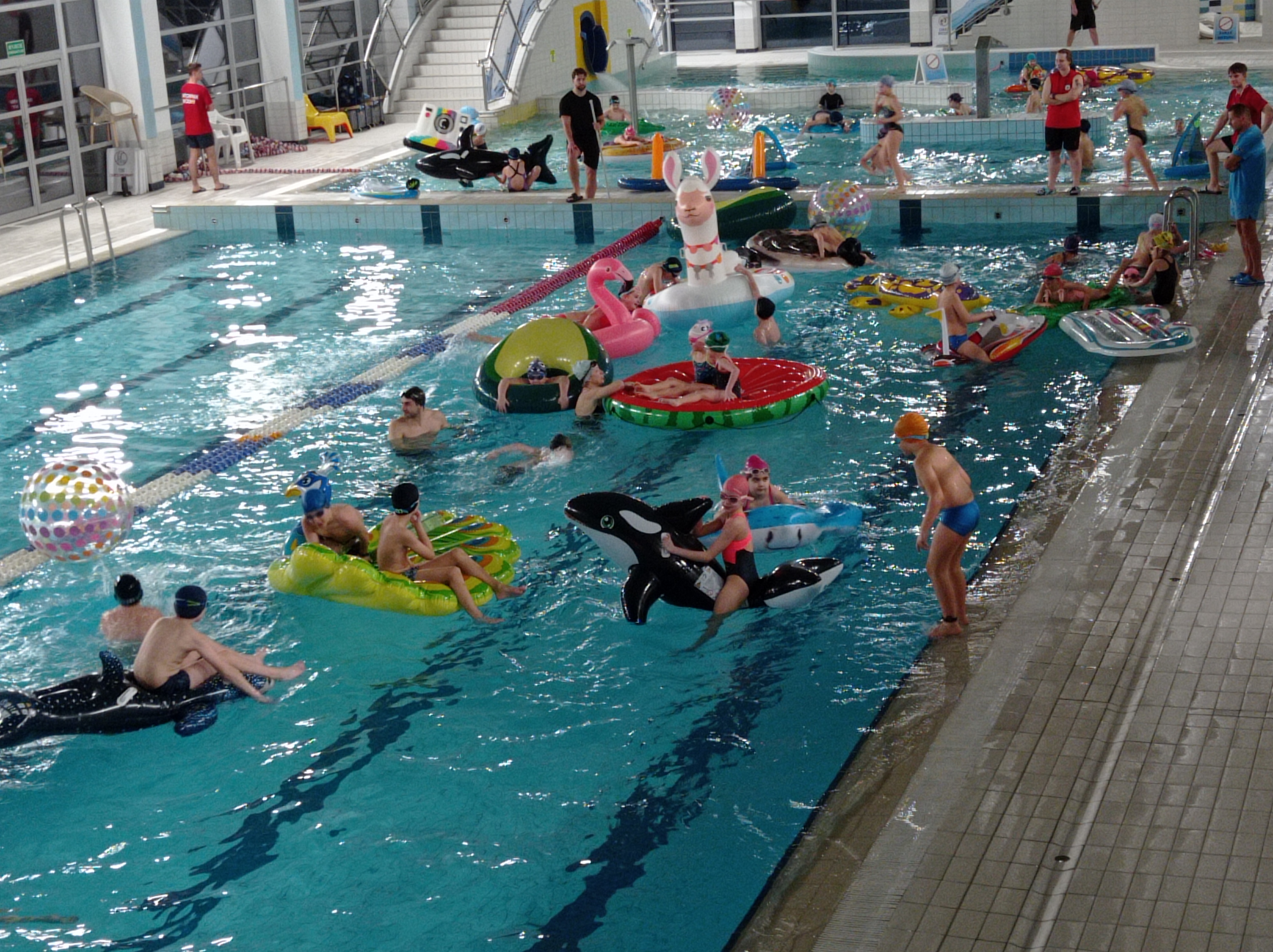 Kolorowe dmuchańce, wodna kula i wspólna zabawa w wodzie stworzyły niezapomniany klimat, a gorąca czekolada była idealną chwilą wytchnienia po aktywnej zabawie. Cieszymy się, że tak licznie przyszliście, oraz że wspólnie mogliśmy przeżyć ten wyjątkowy wieczór. Dziękujemy za Waszą obecność i fantastyczną atmosferę. Do zobaczenia w Centrum Sportu Raszyn!