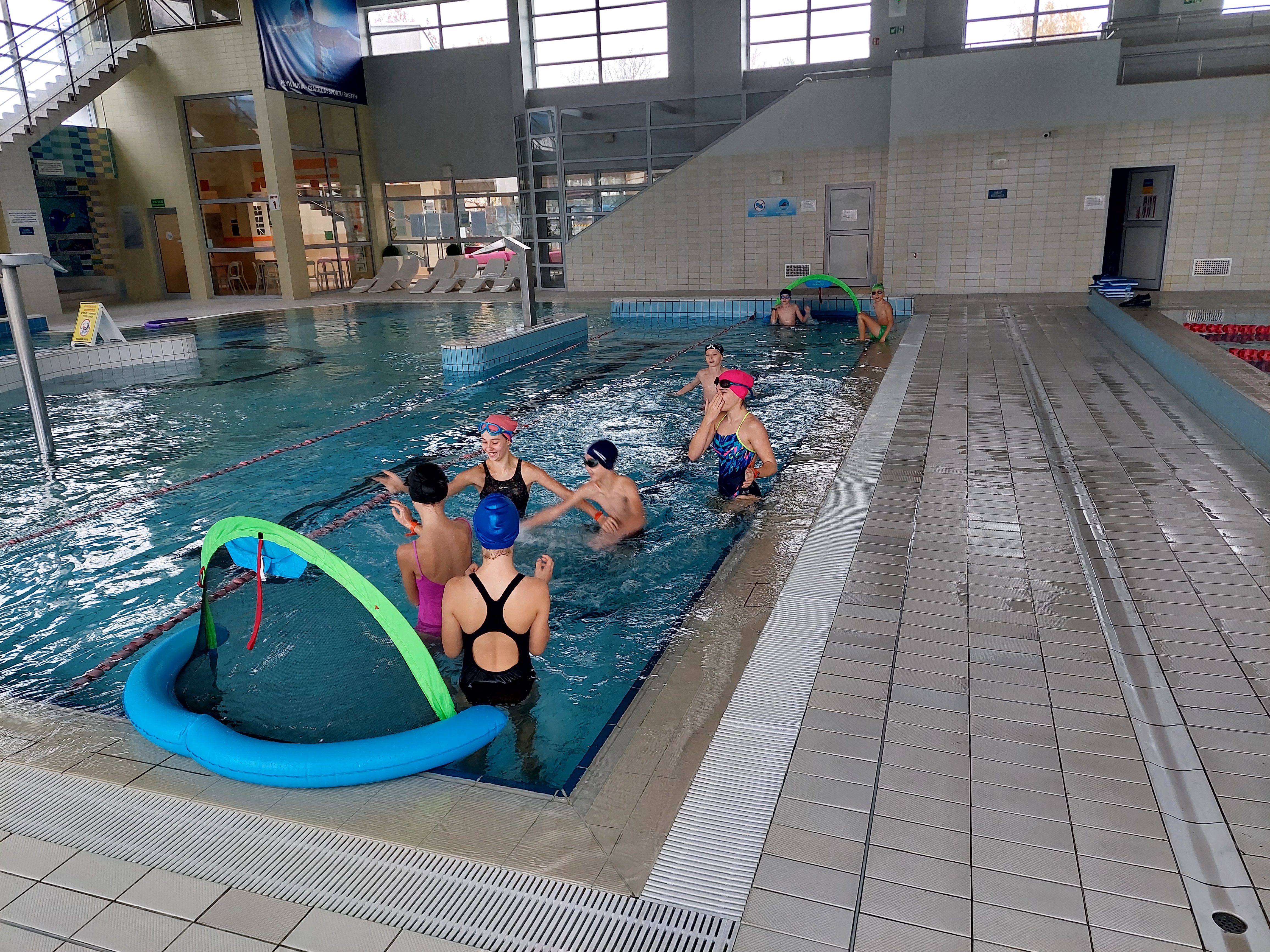 Centrum Sportu Raszyn ponownie gościło uczniów szkoły podstawowej na zajęciach wychowania fizycznego. W ramach lekcji młodzież poprawiała swoją wytrzymałość, siłę oraz koordynację ruchową grając w piłkę wodną. Zajęcia na pływalni są źródłem radości i dobrego humoru dla uczestników co potwierdzają uśmiechy na twarzach dzieci, które utrzymują się nawet po skończonej lekcji.